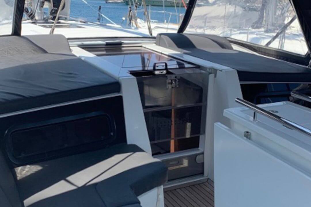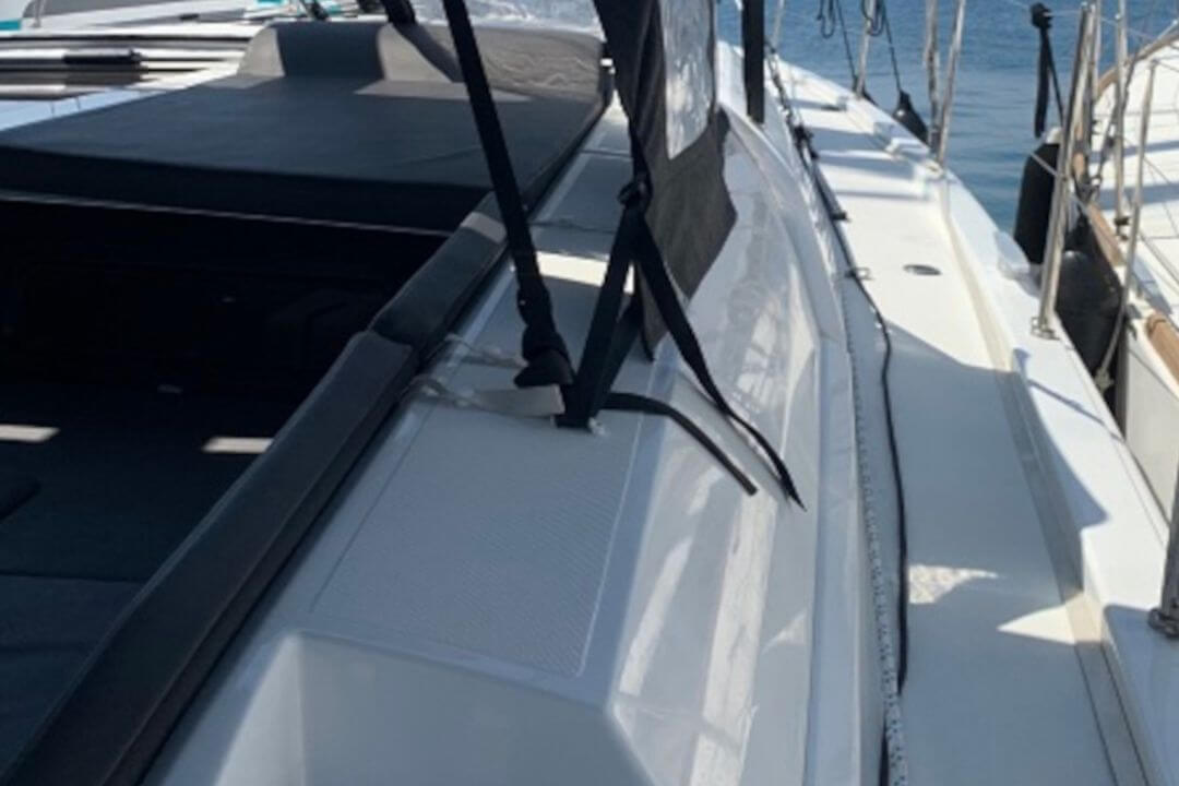 Rolowana genua oraz rolowany grot upraszczają obsługę żagli, a silnik 80 KM daje dużą rezerwę mocy przy manewrach. Ster strumieniowy dziobowy znacząco ułatwia cumowanie rufą w greckich portach.
