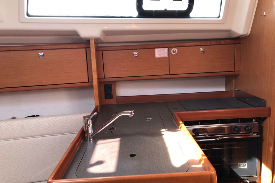Rolowany grot, autopilot oraz ster strumieniowy ułatwiają prowadzenie jachtu i manewry portowe. Panele słoneczne i inwerter zwiększają niezależność energetyczną podczas postoju, a bimini zapewnia cień. Na pokładzie znajduje się także system audio z głośnikami wewnętrznymi i zewnętrznymi oraz dobrze wyposażona kuchnia, która pozwala wygodnie przygotowywać posiłki w trakcie rejsu.