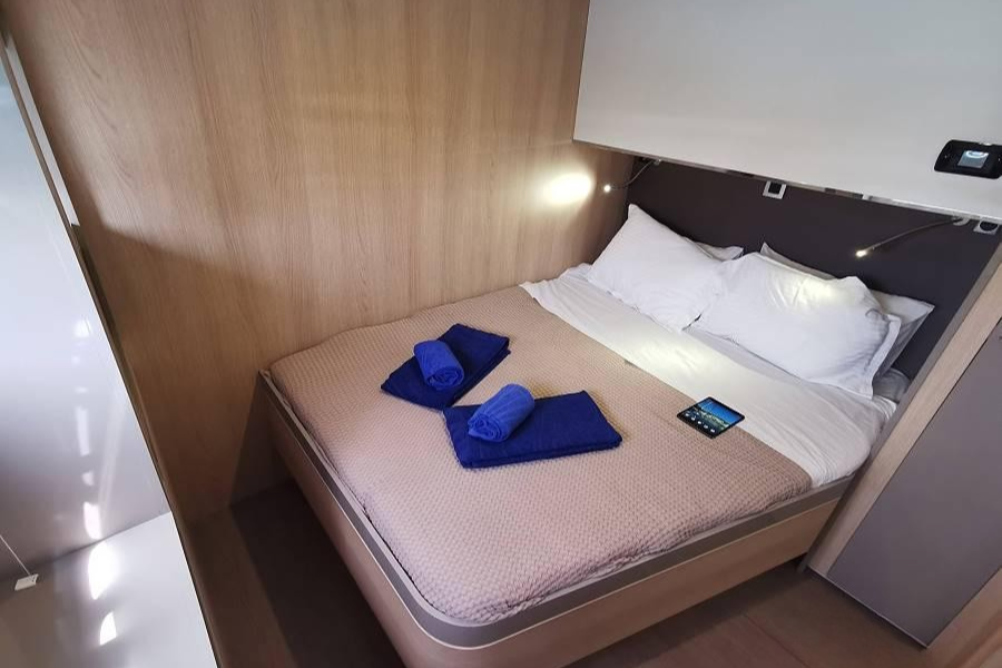 Katamaran Bali 5.4 z 2019 roku oferuje wygodne miejsce dla 12 osób oraz 2 miejsca do spania dla skipperów.