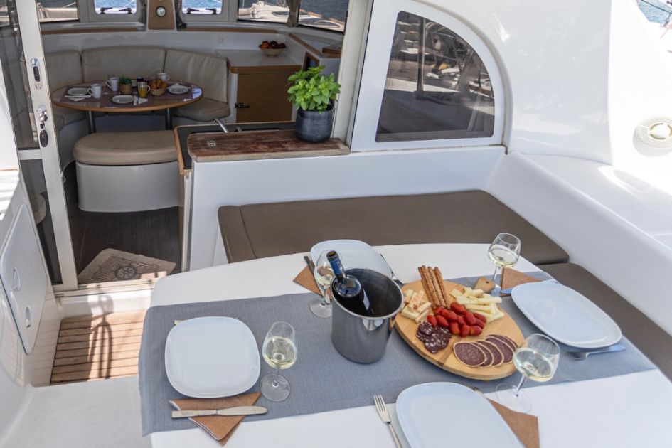 Katamaran Lagoon 380 S2 to przytulna i bardzo praktyczna jednostka, idealna na spokojne wakacje pod żaglami w Grecji. Został zbudowany w 2014 roku i odświeżony w 2021, a w 2024 otrzymał nowy komplet żagli, co przekłada się na komfortowe i bezpieczne żeglowanie.