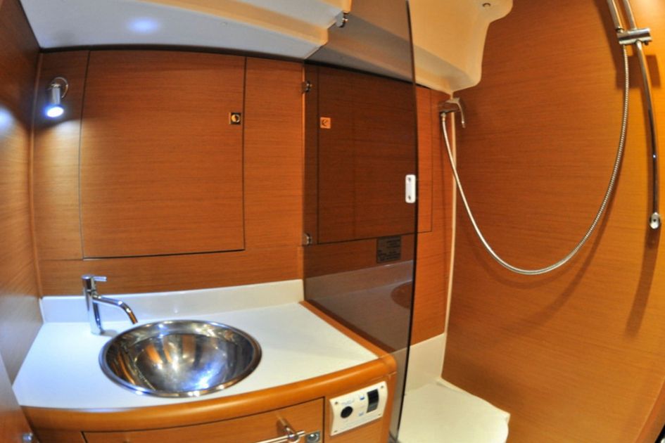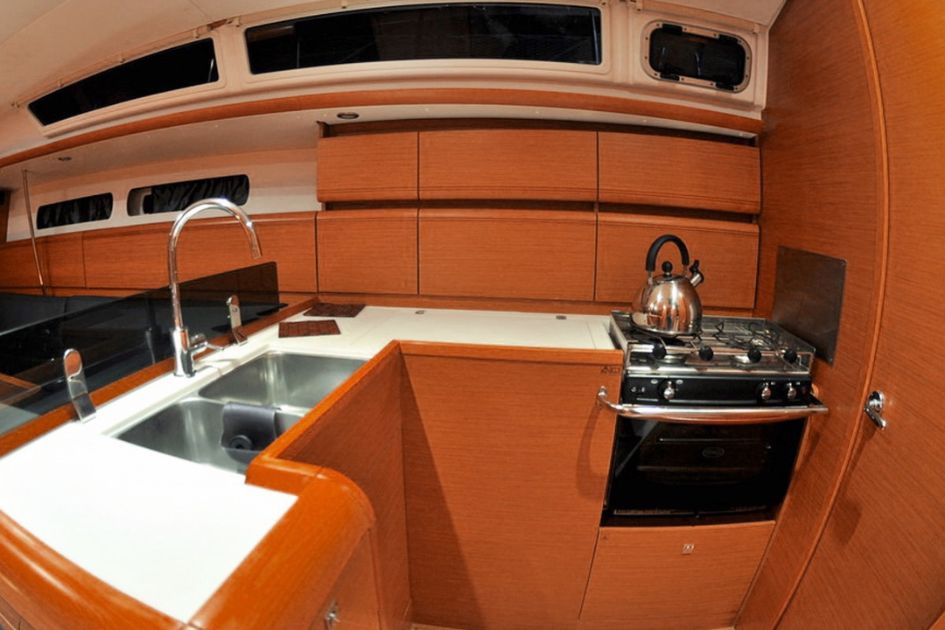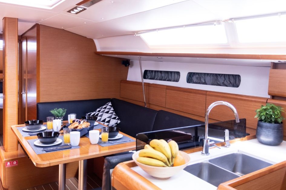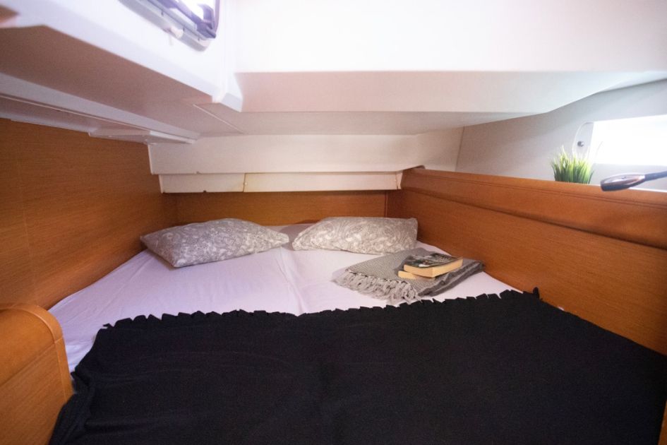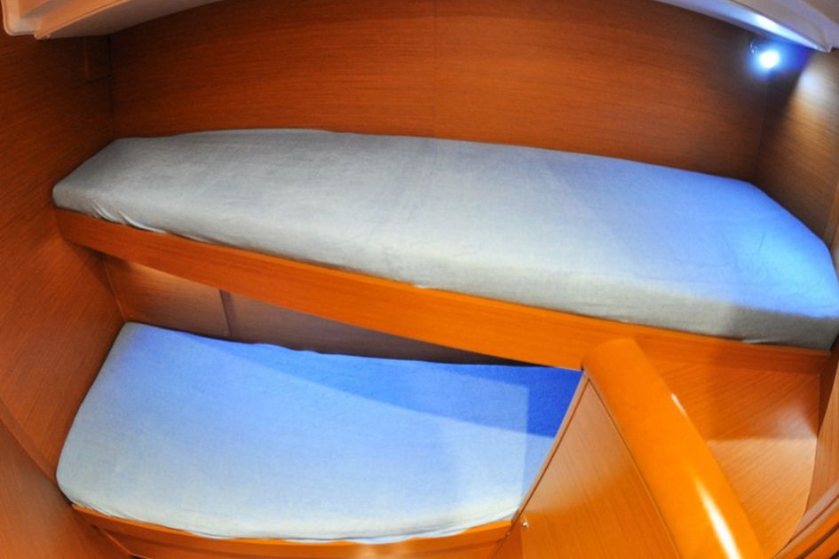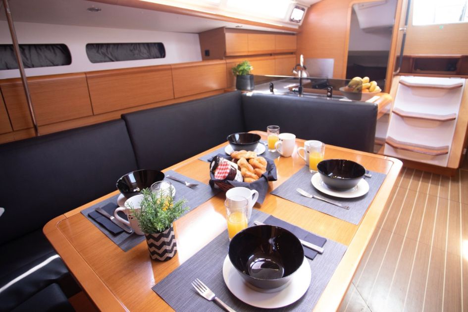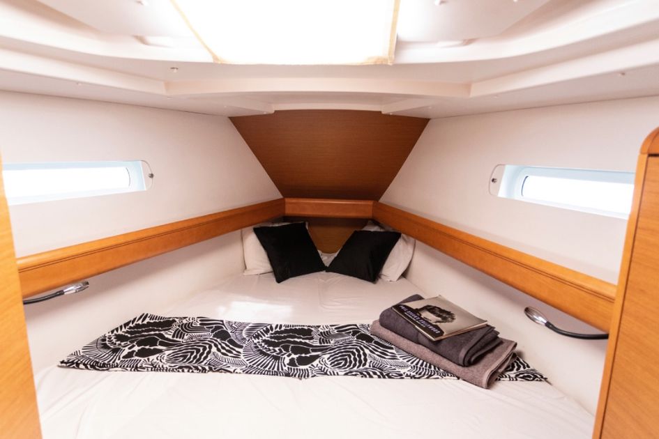 Na pokładzie znajdują się cztery dwuosobowe kabiny oraz dwie łazienki z prysznicem. Standardowo jacht przeznaczony jest dla 8 osób. Przestronny salon i funkcjonalny kambuz zapewniają wygodę podczas codziennego życia na morzu.