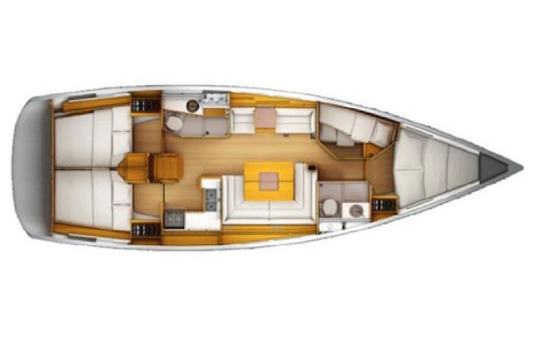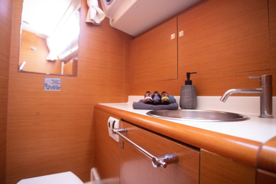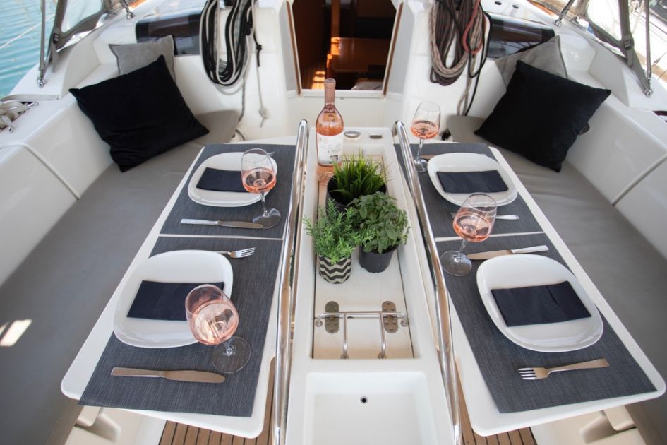 Rolowany grot i genua ułatwiają obsługę żagli, a ster strumieniowy pomaga podczas manewrów portowych. Nowoczesna nawigacja, autopilot oraz panele słoneczne sprawiają, że rejs jest prosty i komfortowy, także na dłuższych trasach. Bimini i sprayhood zapewniają ochronę przed słońcem i wiatrem, a system audio umila czas spędzony na pokładzie.