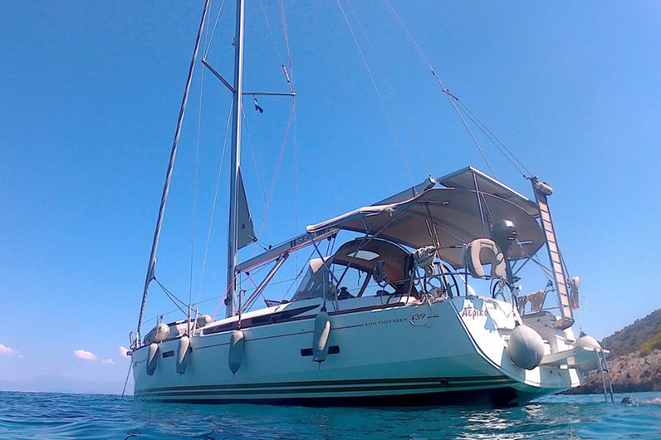 Sun Odyssey 439 to sprawdzony i wygodny jacht żaglowy z 2013 roku, idealny na rejsy w gronie rozdziny i przyjaciół. Jednostka stacjonuje w marinie Alimos i łączy komfortowe wnętrze ze świetnymi właściwościami nautycznymi.